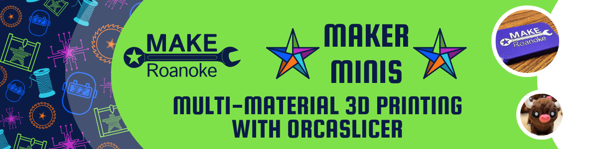 Join us at MAKE Roanoke with another FREE Maker Mini as we show you techniques to achieve a multi-material or multi-color 3D Print!
