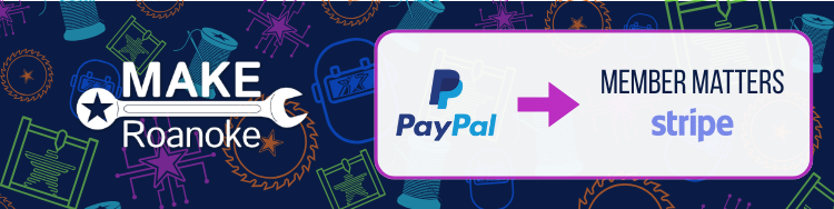 MAKE Roanoke is now accepting payment through Member Matters, via Stripe. By signing up on Member Matters, your payments will be collected just as before, but it will be less administrative work for the board, and you’ll have the option to pay annually!